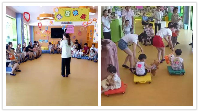 舞蹈过后马上进入到我们的游戏环节《滑板车运爱心接力赛》,这是大家熟悉的滑板,但是需要几个家庭一起通力合作,也需要宝宝和家长一起参与!